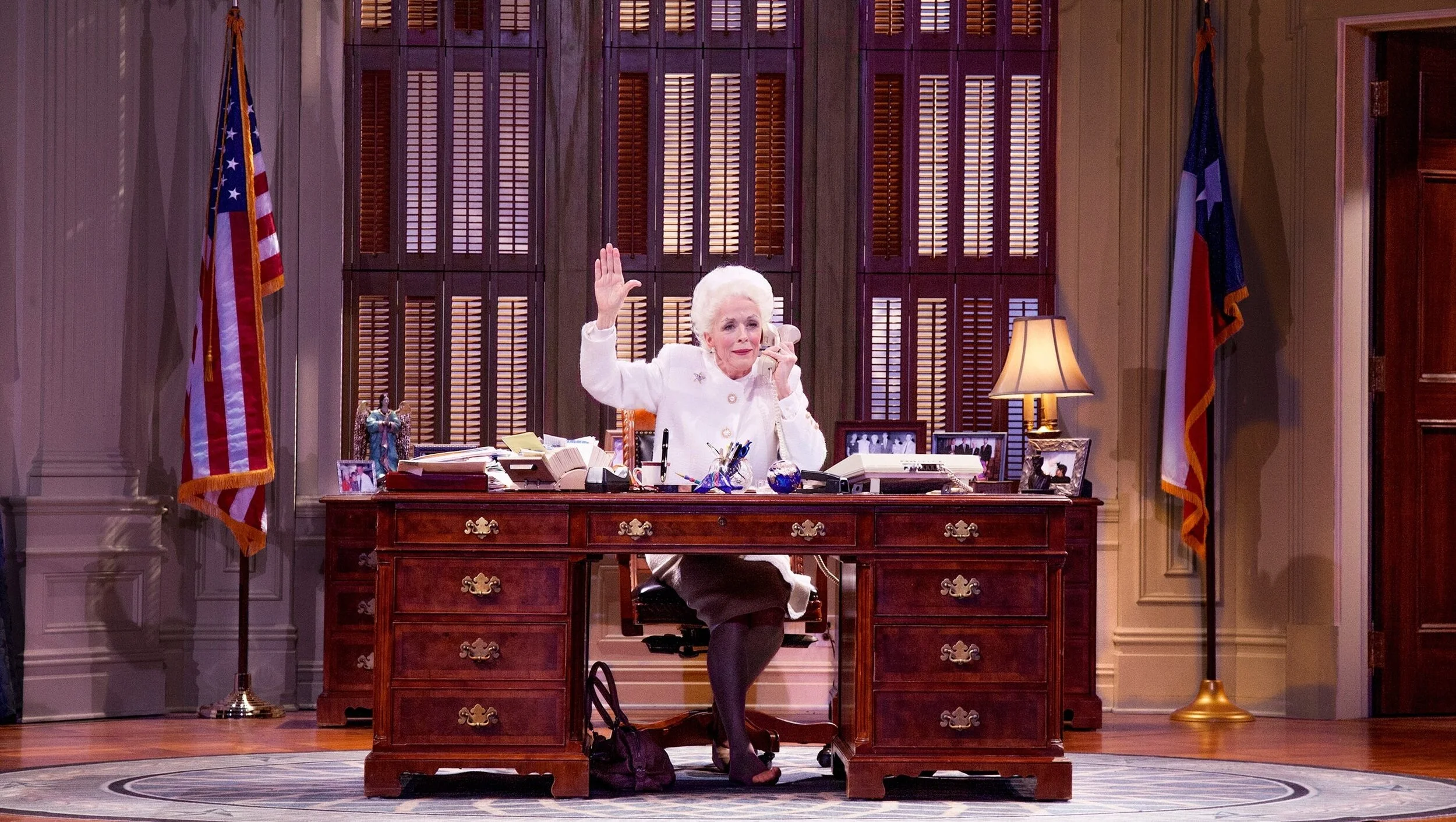 We then see Richards after losing re-election to George W. Bush (who is never mentioned by name), working on the lecture circuit, moving to New York, and dying of cancer. (The set has returned to the lecture circuit by then, which is confusing for the narration; was Richards dead the entire time?) We are treated to not one but two codas that stretch the show, and its sentimentality, a bit too far.