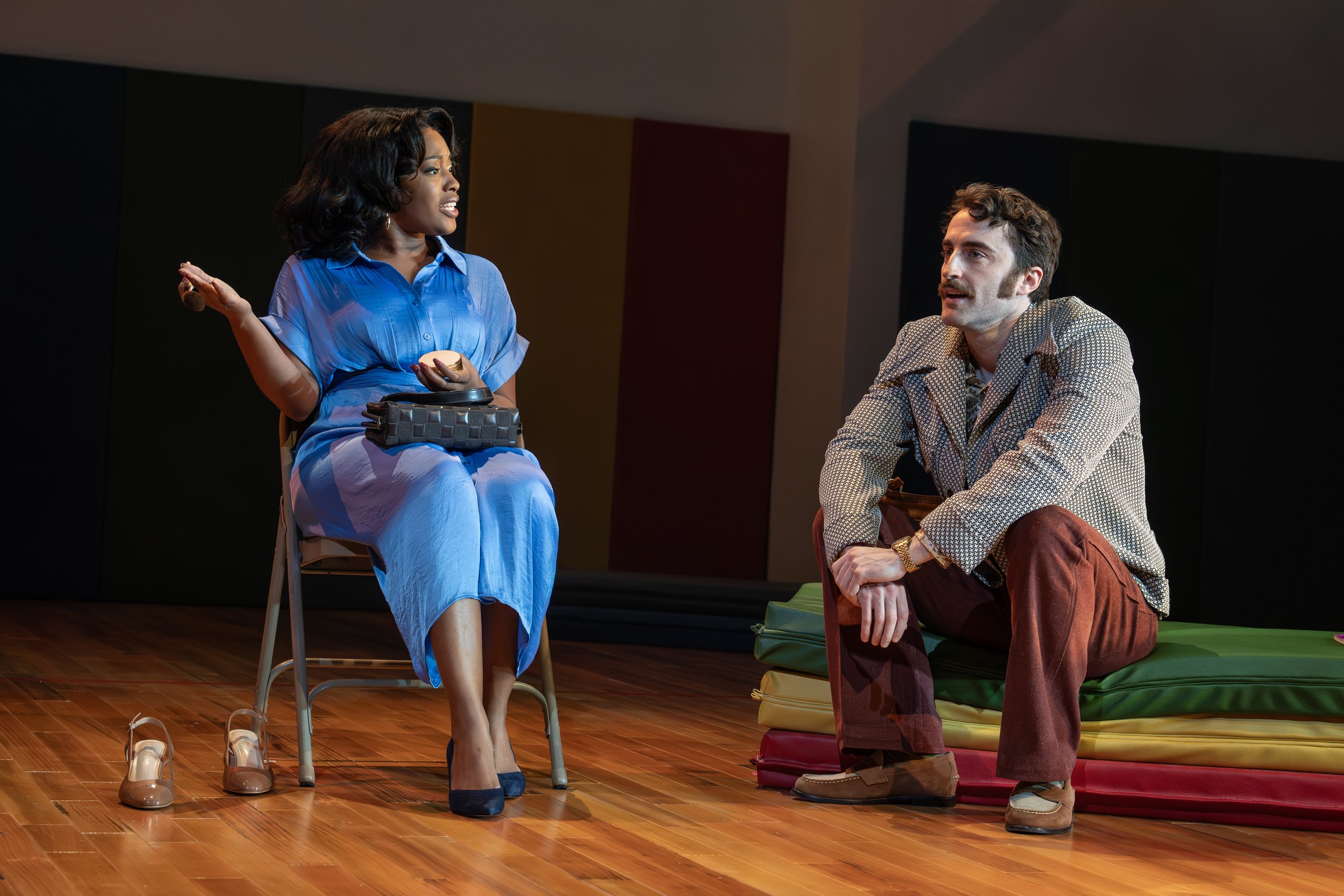 The play then moves back in time to a 1970s gymnasium (the appropriately grungy set is by David Zinn) where Lizzy (also played by Flood), is joined by five women who have gathered for the first meeting of a consciousness-raising group. Susan (Adina Verson) lives in her car and longs to own a motorcycle. Dorothy (Audrey Corsa), held back at her job by her gender, is furious that her less talented co-worker has been promoted before her. Irene Sofia Lucio plays Isidora, a plain-spoken Italian immigrant waiting out her green card marriage, and Betsy Aidem plays Marge, a middle-aged housewife who resents her retired husband’s refusal to help with household chores. She resents it so much, in fact, she fantasizes about killing him. Celeste, the only Black member of the group, played by Kristolyn Lloyd, was forced to stall her academic career to care for her aging mother. And although she hung the fliers and reserved the gym, Lizzy is adamant that she is not the group’s leader. She is a frustrated journalist, forced to cover weddings at the local paper. (When she asked for more serious subjects, she was also given obituaries.)