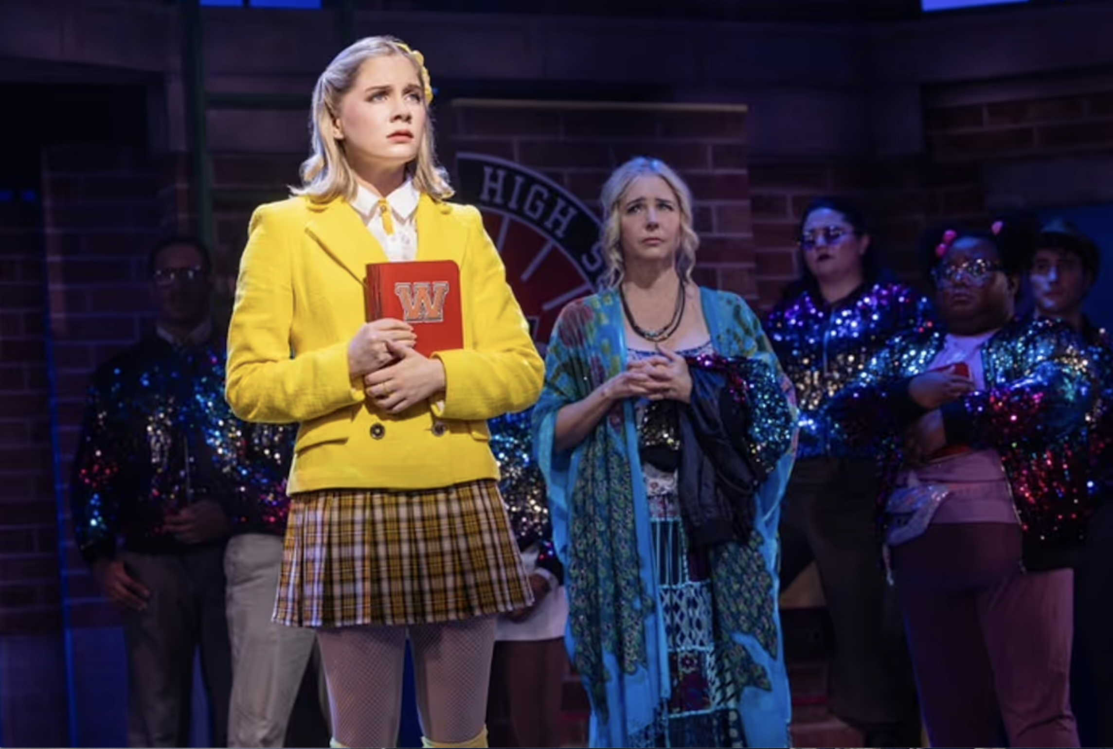 Like the movie it's based on, Heathers skewers the hierarchy of high school as three queen bees named Heather (McKenzie Kurtz, Olivia Hardy and Teeter) are brought down by reluctant acolyte Veronica (Lorna Courtney) and her rebel boyfriend J.D. (Casey Likes) in some deadly ways. With a book and score by Laurence O'Keefe and Kevin Murphy, Heathers the Musical is lighter than the film and has undergone some rewrites since its 2014 Off-Broadway debut, becoming a Gen Z smash thanks to multiple cast recordings, a London pro-shot and TikTok bootlegs. Fans, who call themselves Corn Nuts after one character's final words, cosplay as the characters and scream in anticipation of each song.